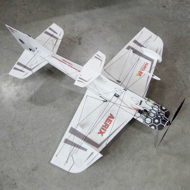- Nízká letová hmotnost! S motorem T-Motor AM20 s uhlíkovou vrtulí 10/3.1" se i bez další "speciální" výbavy snadno přiblížíte k limitu 100 g danému pravidly. I při použití obyčejného motoru s hmotností okolo 20 g a s plastovou vrtulí např. APC 8/4.1 budete s hmotností do 110–115 g bez baterie. Baterie 2S 150 mAh má hmotnost cca 10 g. Zkušení stavitelé snadno hmotnost dále sníží např. odstraněním částí krabiček serv, odstraněním konektorů na servech apod.- Odolná a trvanlivá konstrukce! Na hlavní části modelu je použito 3mm deskové EPP s uhlíkovými výztuhami navrženými tak, aby celé vyztužení opravdu fungovalo a drak modelu byl za letu i při dlouhodobém používání stabilní… a také aby snesl nějakou tu drobnější ránu. Trup AERIXe se vám za křídlem lámat nebude.- Pull-pull náhony kormidel ocasních ploch. Žádná pevná táhla ve vodítkách, co občas drhnou s jasnými důsledky pro neutrál kormidel, ale lehké a pevné nitě s jednoduchým napínacím mechanismem.