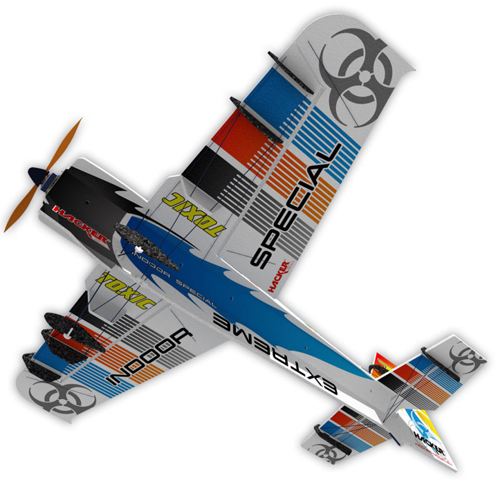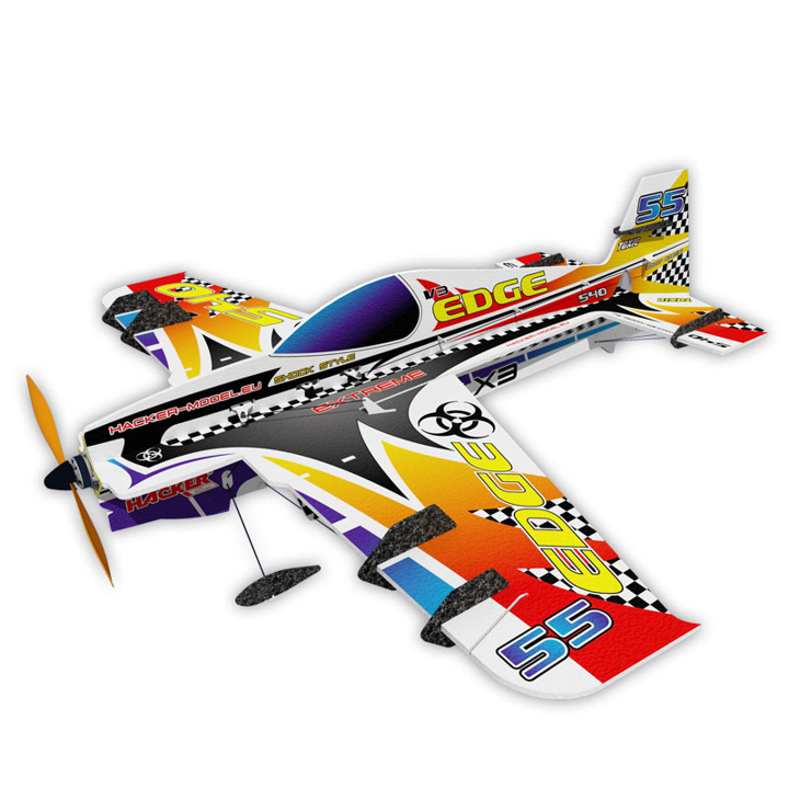Super akrobatický model pro extrémní halové létání. Model je vyroben moderní technologií na CNC strojích z téměř nezničitelného materiálu EPP. Lehká konstrukce s desek epp tl. 5 a 3mm vyztužená uhlíkem zajišťuje pevnost a stálost modelu. Díky "chlupatému" povrchu dokáže model i v sestupných obratech letět velmi pomalu. S lehkým vybavením a baterií LiPol od 2S 350mAh lze dosáhnout letové hmotnosti od 145g! Model je schopen zaletět přemet v nožovém letu a další neuvěřitelné akrobatické prvky. S vhodným seřízením může s modelem létat téměř každý a díky své konstrukci a použitým materiálům vydrží i "méně šetrné" zacházení. Budete potřebovat: Alespoň 4-kanálovou RC soupravu např. FLYSKY FS-I6 kat.č. HC 4101 (nejlépe s malým přijímačem), 3 mikroserva 5-9g kat.č. HC 4303, pro základní akrobacii motor MFORCE 2812CA-27 (1780kv) kat.č. HC 3503D s vrtulí GWS SF 8/4.3" kat.č. HCG8043SF, nebo pro vyšší výkon motor MFORCE 2815CA-14.5 (2300kv) kat.č. HC HC3503B s vrtulí GWS HD 8/4" kat.č. HCG8040HD, regulátor MC-12A kat.č. HC3365, baterii LiPol 2S 300-450mAh, řídké kyanoakrylátové (CA) lepidlo kat.č. HC6430 s aktivátorem kat.č. HC6435 a drobné nářadí.