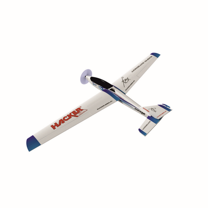 Polomaketa známého větroně v několika atraktivních barevných variantách s plnobarevným celoplošným potiskem všech hlavních dílů. Větroň je součástí série modelů SKG (simple known gliders – jednoduché známé větroně) z produkce firmy Hacker. Pevná, lehká a odolná konstrukce z expandovaného polypropylenu (EPP) přispívá k výborným letovým vlastnostem a je také zárukou veliké odolnosti modelu při menších haváriích. Vhodný také pro létání na svahu. Budete potřebovat: min. 4 kanálovou RC soupravu, 4 mikroserv 9g kat.č. HC4301, elektromotor M FORCE 2826CA-15 kat.č. HC3506, regulátor MC-22A kat.č. HC3370, pohonnou baterii LiPol 3S 1300 až 1600mAh, sklopnou vrtuli, drobné nářadí a vteřinové lepidlo s aktivátorem.P