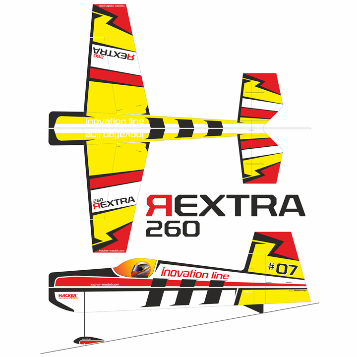 Díky většímu rozpětí a nízkému plošnému zatížení si při nastavení menších výchylek kormidel s REXTROU 260 skvěle zalétá i méně zkušený pilot.Doporučené vybavení: