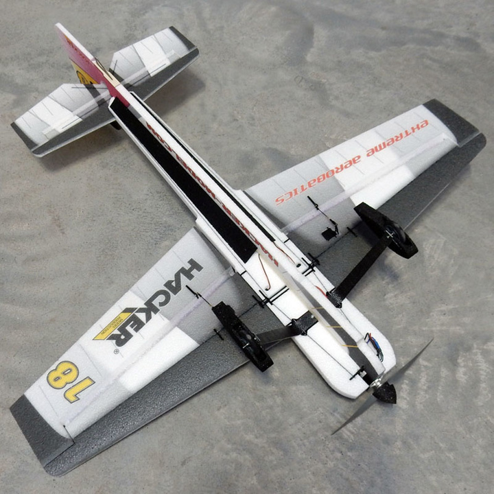 Odnímatelné poloviny křídla se spojují uhlíkovou trubkou a zajišťují gumovými O-kroužky. Odnímatelný je také dvoudílný podvozek vyrobený z uhlíku.TYP 1 – běžná akrobacie: motor MForce 3536CA-8 990KV (HC3512), regulátor MC-45A (HC3375), vrtule APC 11/5.5" elektro (HCLP11055E), baterie LiPol 3S 2200mAh (195g), HCTA45C2300, 4 serva MASTER FORCE MF D-933MG 16g (HC4357)