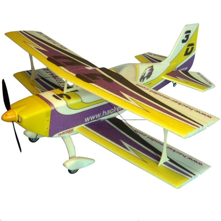 Polomaketa akrobatického letadla. Model je vyroben moderními technologiemi z "nezničitelného" materiálu EPP. Prostorová konstrukce trupu a uhlíkové výztuhy křídla dělají ULTIMATE 3D extrémně pevným a odolným! Obsahuje: Trup, křídla, výškovku a směrovku s kvalitním barevným potiskem, podvozek, kola, uhlíkové výztuhy a táhla, veškeré drobné příslušenství, návod. Základní pohon: Motor: MFORCE 3530CA-14 Regulátor: MC-22 nebo MC-45 Vrtule: APC 11/5,5" electro (pro baterii LiPol 3S), APC 10/5" electro (pro baterii LiPol 4S) Baterie: LiPol 3S nebo 4S 1600-2200mAh (4S baterie výrazně přispěje ke zvýšení výkonu pohonné jednotky a ve spojení s tímto motorem a vrtulí 10/5E je to dobrá kombinace) Letová hmotnost: > 770g Výkonnější pohon (3D): Motor: MFORCE 3536CA-8 Regulátor: MC-45 Vrtule: APC 11/5,5" electro (pro baterii LiPol 3S) Baterie: LiPol 3S 1500-2500mAh Letová hmotnost: > 800g Budete potřebovat (není součástí): 4-kanálovou RC soupravu, 4 mini serva 9-15g MG kat.č. HC4357, střídavý motor 250-400W MFORCE 3536CA-8 kat.č. HC3512 s regulátorem MC-45A kat.č. HC3375 případně kombo motoru a regulátoru kat.č. HC3542 (obsahuje motor MF 3536CA-8 a regulátor MC-45A), kužel 45 mm, vrtuli APC 11/5.5" kat.č. HCLP11055E, prodlužovací servokabely 1x 10-15cm kat.č. HC4479, 2x 20cm kat.č. HC4480 a 2x 30cm kat.č. HC4483, baterii LiPol 3S 1500-2500mAh, řídké kyanoakrylátové (CA) lepidlo s aktivátorem, základní nářadí. ------ parametry ------ Hmotnost: > 770g Rozpětí: 1000mm Délka: 1050mm RC: 4 – motor, křidélka (2 serva), výškovka, směrovka Motor: 250-400W … MFORCE 3530CA-14 / MFORCE 3536CA-8 Regulátor: MC-45A Baterie: LiPol 3-4S 1500-2500mAh Vrtule: 10/5" (4S LiPol), 11/5.5" (3S LiPol)