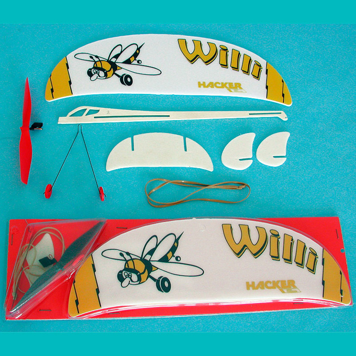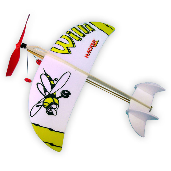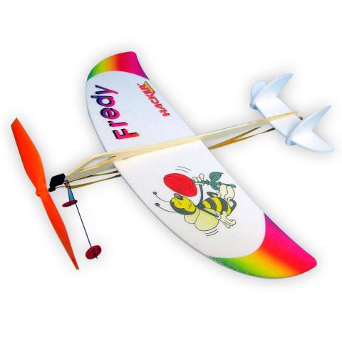 Velmi jednoduchá stavebnice volně létající ho modelu s gumovým pohonem pro malé modeláře od 8 let.